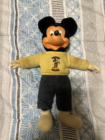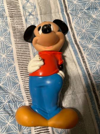 Micky with yellow shirt from early 70s asking $30 Micky mouse from early 80s that talks asking $25 Piggy bank from 60s asking $25 Obo Lowered prices