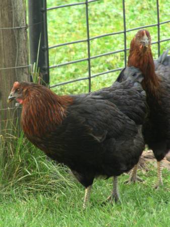Rhode Island Reds are an old homestead standby and a great choice for a sustainable farm flock. Hens are renown as excellent layers of large to extra-large brown eggs. Young roosters dress out at around 5 lbs. at 5 months old when properly fed. Our line of Rhode Island Reds are prolific layers, hardy, vigorous, and friendly. We breed them to have gentle, easy-to-handle personalities. These are true dual-purpose chickens that meet the correct weight requirements for the breed and are much larger and better filled out than most RIRs available from the commercial hatcheries. They have dark-red color and will perform well as 4-H show chickens if desired. More information about our flock can be found on our website at www.northstarpoultry.com/rhode-island-reds