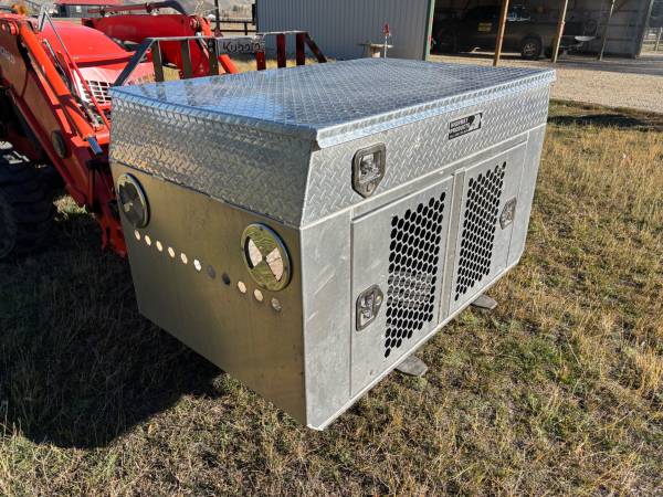 Outside dimensions are 60" wide, 27" deep, and 35" tall (see the pic of the build diagram). The tool box area on top is very large and I traveled with two German Shepherds in the kennel. The tool box lock and kennel door locks are keyed the same. There is a removable center divider for the kennel. Easy installation - bolts to the floor of a pickup truck bed (2020 Ram in my case.). Purchased for $4600. Lifetime warranty transfers to secondary owners.