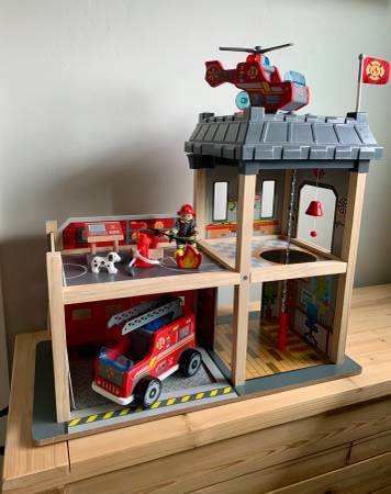 Hape Fire Station and Play Set. Like new condition! All accessories included and in perfect working order. Non-smoking and pet-free house. Would make an excellent gift as it does not need to be...